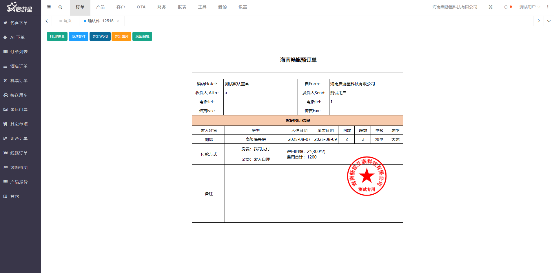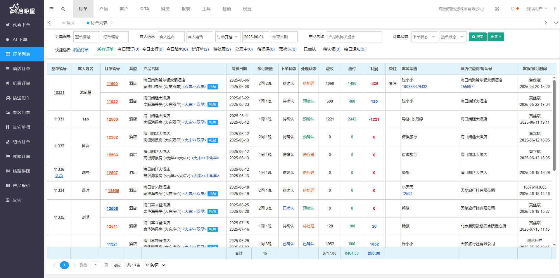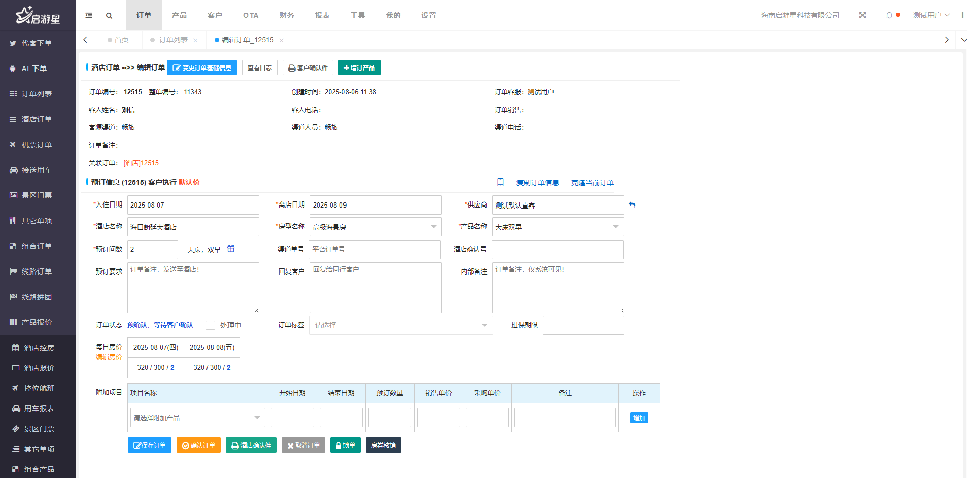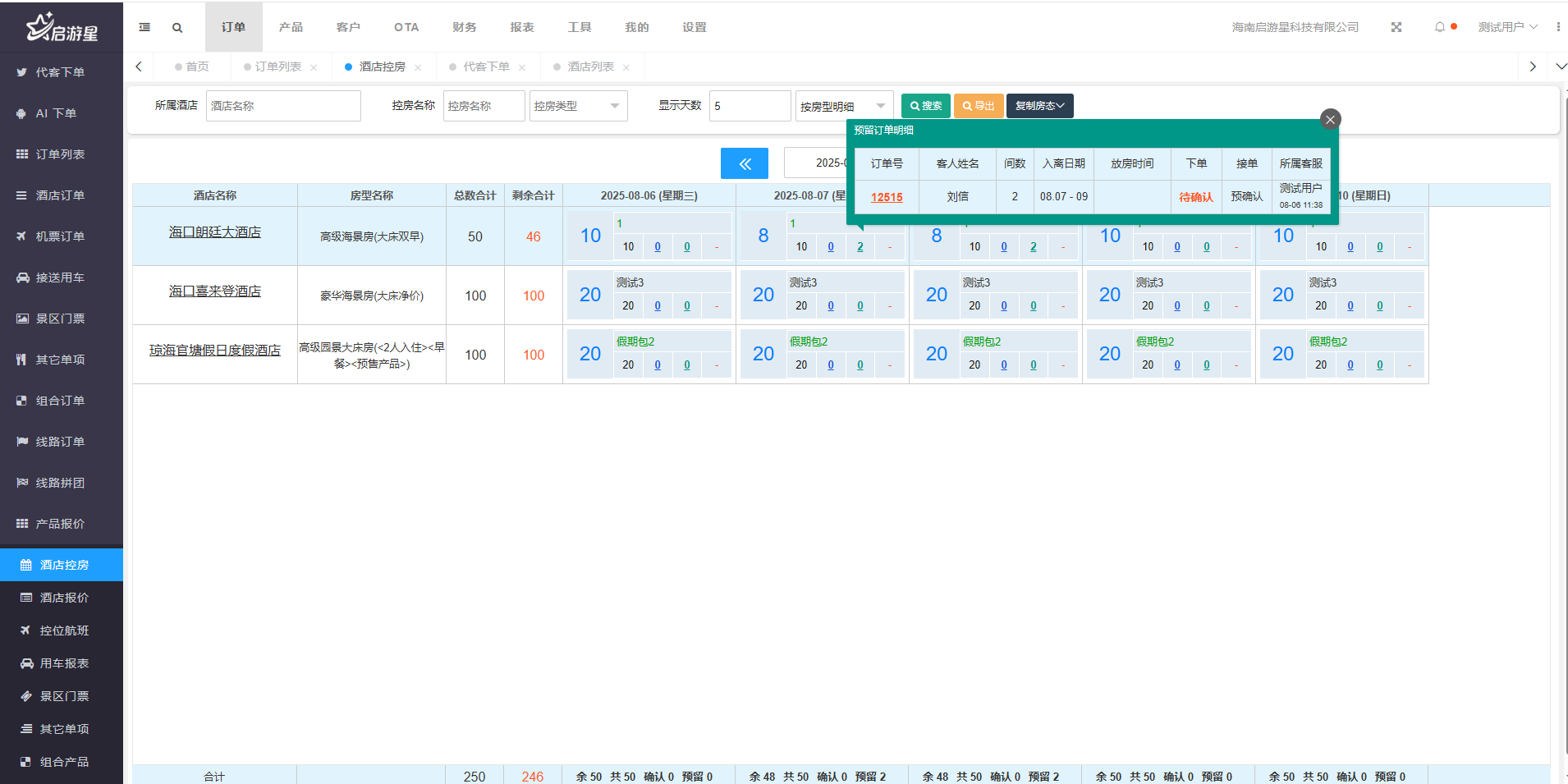 契合大部分旅行社业务需求,完美契合酒店为主线上线下旅行社。